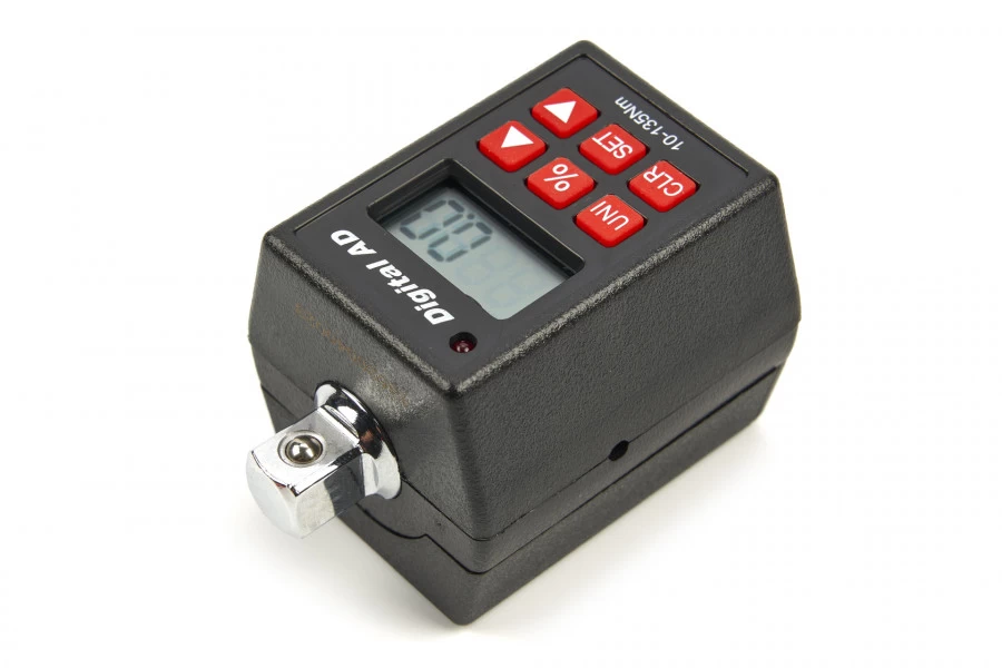 Deze digitale momentmeter meet met een nauwkeurigheid van ongeveer drie procent linksom en ongeveer twee procent rechtsom. De aflezing is instelbaar in newtonmeter (Nm),pound-foot(lb ft),pound-inch(lf-in) en kilogramkracht (kg-m). Deze aflezing is erg duidelijk dankzij een helder display. De meter zelf heeft een geheugen voor vijftig aanhaalmomenten. Hij wordt geleverd in een stevige opbergkoffer – met twee batterijen van 1,5 volt.