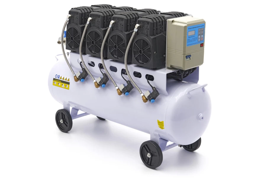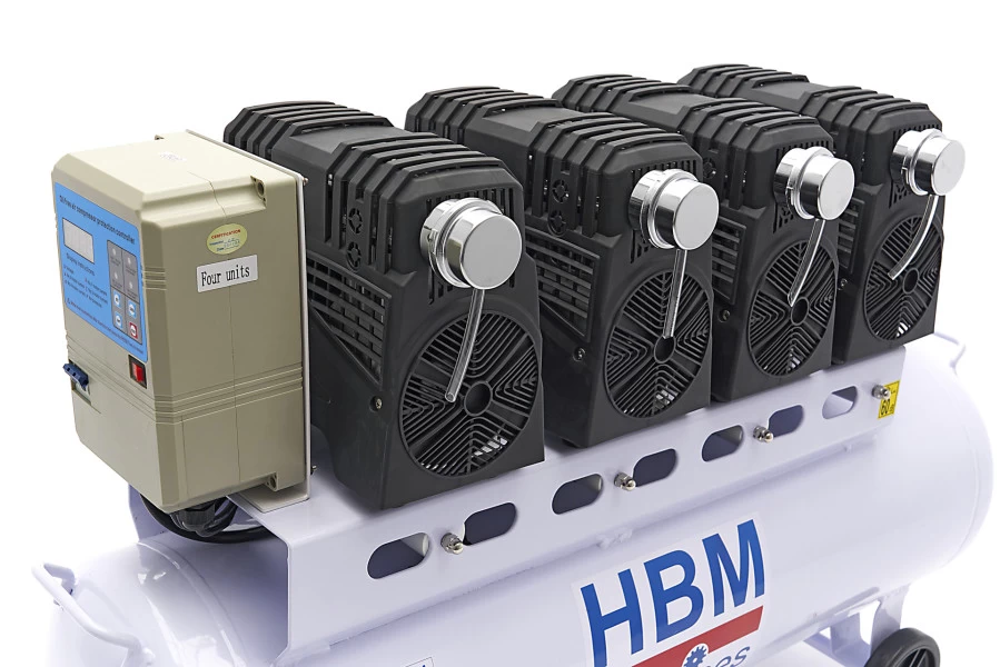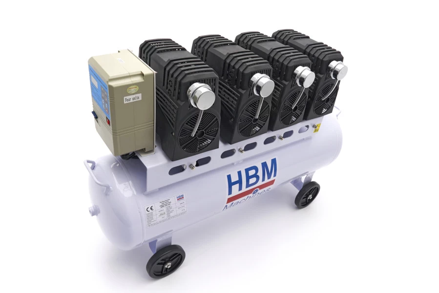 De 120 liter druktank zorgt voor een flink perslucht buffer, waardoor de compressor niet snel zal aanslaan. Dit zorgt dus voor een korte duty cycle van de machine. De motorcontroller start de motoren één voor één na elkaar op om overbelasting van het stroomnet te voorkomen. Ook wordt een overbelaste motor door de controller automatisch uitgeschakeld, totdat iemand weer op de reset knop drukt