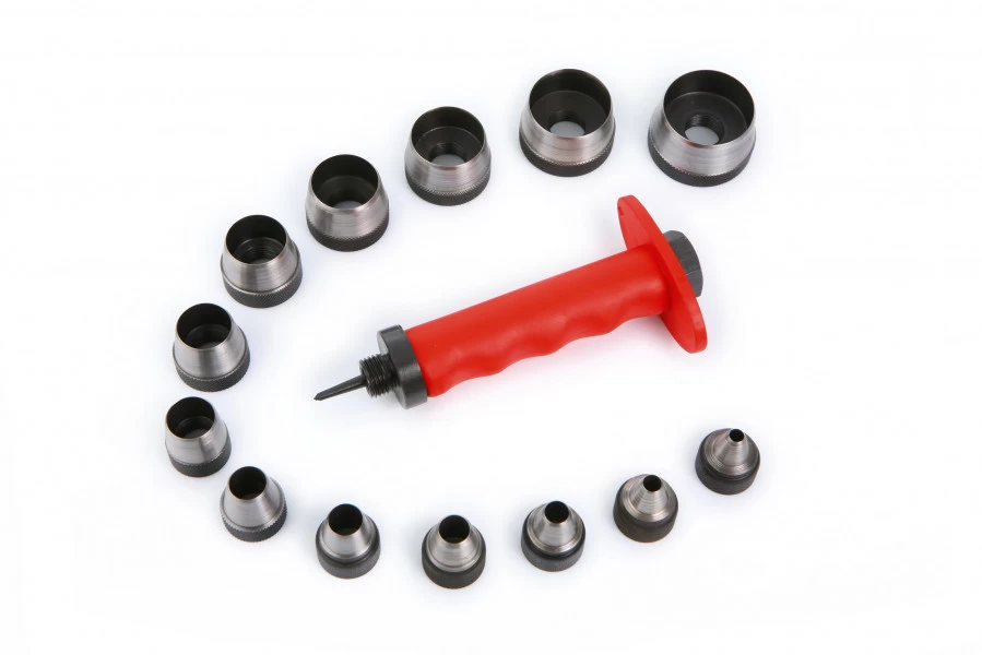 Met de uit veertien delen bestaande set holpijpen van HBM maak je perfecte gaten in allerlei zachte dunne materialen. De set bestaat uit veertien holpijpen in verschillende maten, een houder en een kunststof koffer.