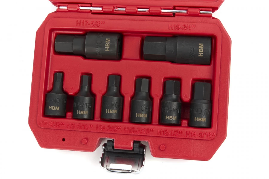 Dit zijn uitstekende krachtdoppen voor het aanbrengen en weghalen van zeskantige bouten en moeren. De veertien doppen zijn geproduceerd om een perfecte grip te krijgen op een aantal veel voorkomende maten ijzerwerk. En die grip houden ze heel lang ze zijn gemaakt van chroommolybdeen, een metaal dat ontzettend taai is en nauwelijks vervormt bij hoge temperaturen. Ook zijn deze eersteklas krachtdoppen prima bestand tegen corrosie.
