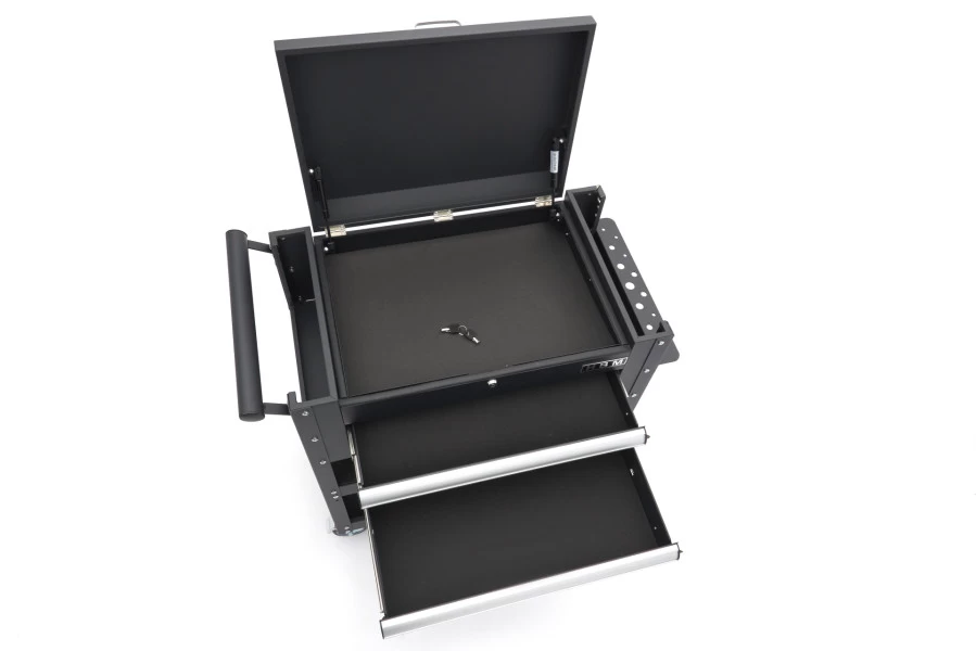 De gereedschapswagen is voorzien van 2 stevige planken welke kunnen worden belast tot 40 kg. Daarnaast heeft de gereedschapswagen nog twee laden en een opbergvak aan de bovenzijde welke zijn af te sluiten middels het slot.