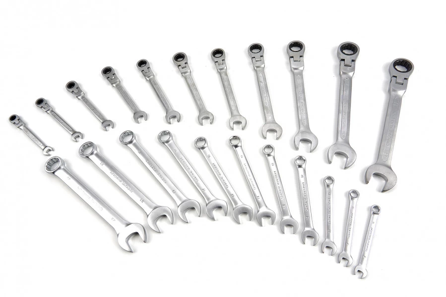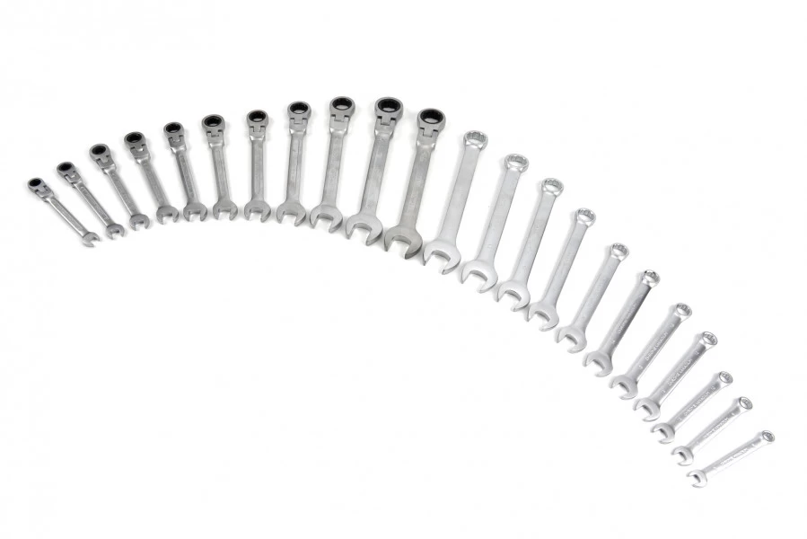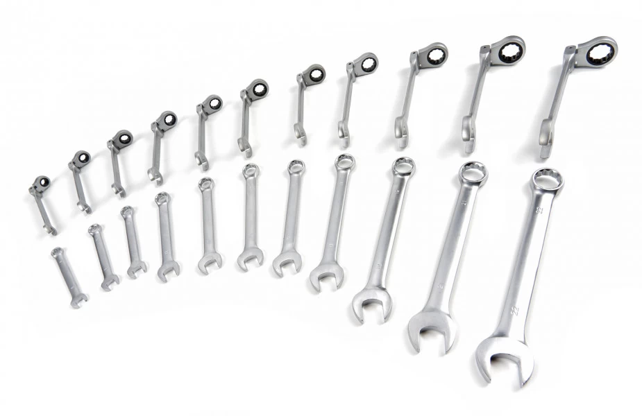Geen werkplaats kan zonder ring- en steeksleutels. Met deze 22-delige ring-ratel-steeksleutelset van HBM heb je alle ring- en steeksleutels in de meest gebruikte maten direct bij de hand. De set bestaat uit 11 standaard ring-steeksleutels en 11 ring-steeksleutels met ratel en kantelbare kop. Hiermee kun je ook bouten op moeilijk bereikbare plekken vast- of losdraaien. De professionele foam inlay zorgt dat de sleutels slipvast worden opgeborgen en dat alle ring-steeksleutels hun vaste plek krijgen. Hoef je nooit meer te zoeken en grijp je nooit meer mis.