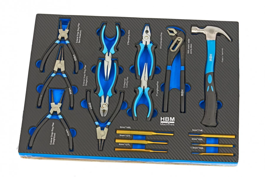 Heb je een gereedschapswagen? En wil je deze het liefst in één keer vullen met een breed assortiment aan verschillende, handige tools? Dan is het wellicht handig om te kijken naar gereedschapsvulling an sich. Deze premium set is daar een voorbeeld van. Hij bestaat uit 245 gereedschappen, uiteenlopend van gebogen puntbektangen tot klauwhamers met een fiberglas steel. Dat alles is verspreid over zes lades die je zo in je gereedschapswagen van HBM kunt schuiven.