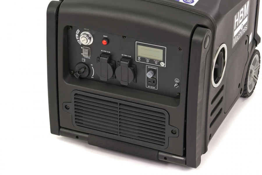 De HBM 3.200 Watt inverter generator is gemakkelijk te starten en is geschikt voor het aandrijven van televisies, laptops, verlichting, kachels en meer. Een beveiliging op de uitgangen zorgt ervoor dat elektronica zonder risico op overbelasting kan worden aangesloten. De generator gaat automatisch uit wanneer overbelasting of een te laag brandstofniveau ontstaat. Op het LED display lees je eenvoudig de status en prestaties af, zoals voltage, frequentie en tijd. Met dit model van HBM beschik je over een hoog vermogen in een compact design. De behuizing zorgt er voor dat het geluid extra wordt gedempt. Daardoor is het een ideale generator voor op reis, bijvoorbeeld in de caravan, camper of tent. De slechts 35 kg wegende generator heeft ook 2 wielen en een handvat om makkelijk te verplaatsen.