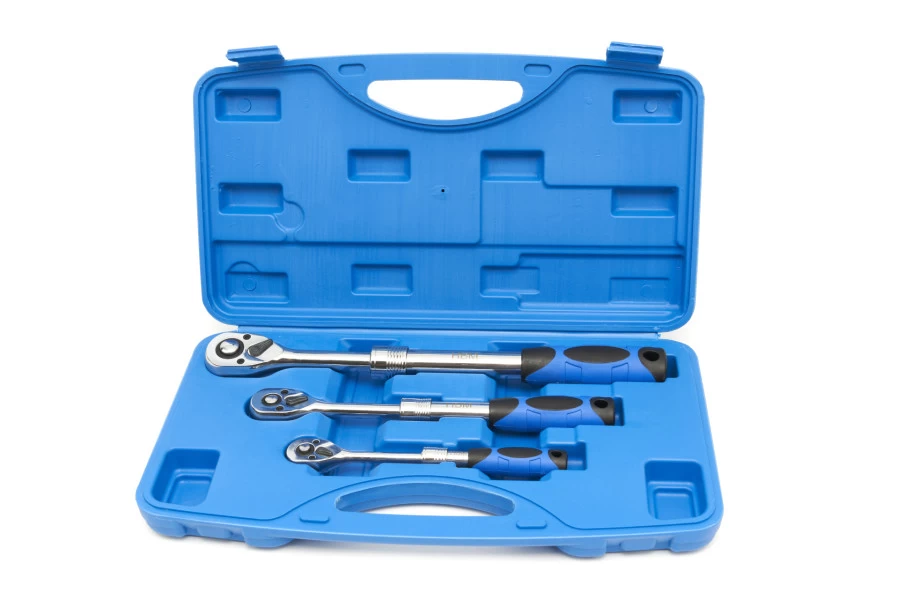 De HBM 3 Delige Professionele Uitschuifbare Ratelset set met 72 tanden en kunststof handvat, ligt goed in de hand.