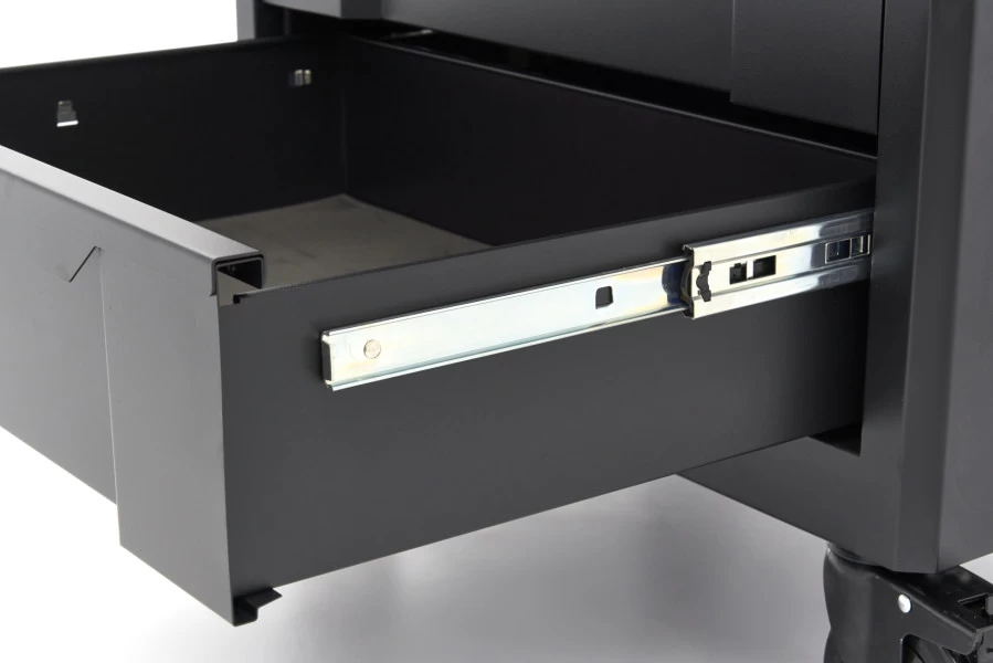 De robuuste constructie van industrieel staal zorgt voor duurzaamheid en betrouwbaarheid, terwijl de zwarte en rode glanspoedercoating een professionele uitstraling toevoegt aan je werkruimte.