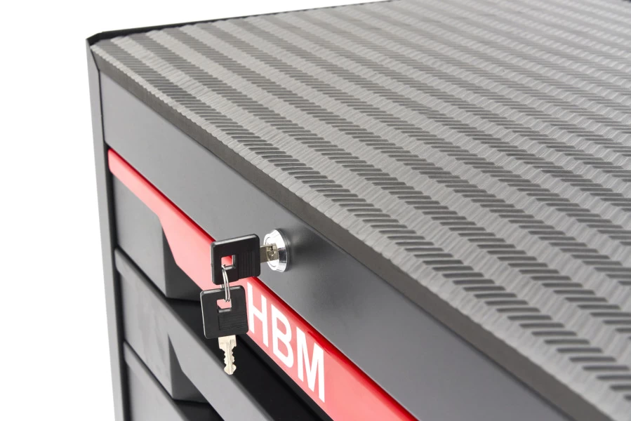 Dankzij het centrale vergrendelingssysteem met cilinderslot blijven je waardevolle gereedschappen veilig opgeborgen. De 7 heavy duty laden met auto return mechanisme bieden voldoende opslagruimte voor al je gereedschap, en de bijgeleverde 2.5mm PE lade voering helpen je gereedschap te beschermen.