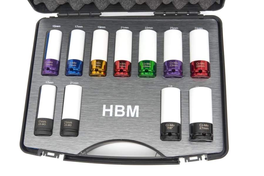 HBM Lange Krachtdoppenset Met Beschermkappen 11-delig, 1/2 Inch