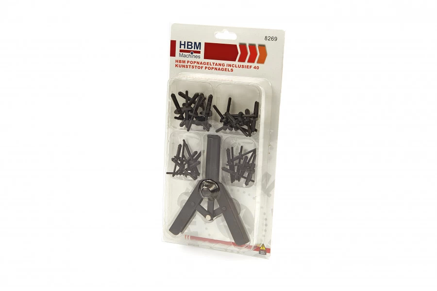 Over de HBM Popnageltang inclusief 40 Kunststof Popnagels