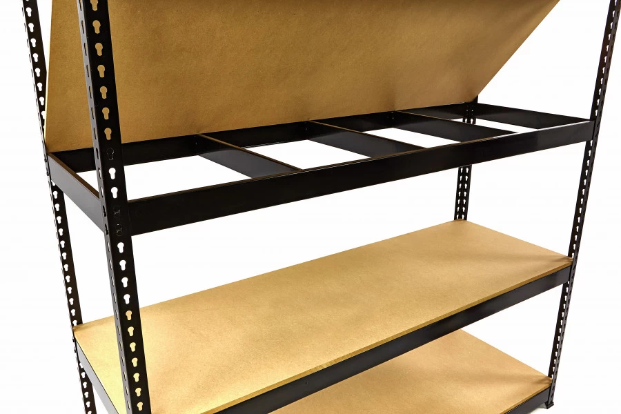 De zeer stevige HBM professionele legbordstelling is zowel geschikt voor de professionele werkplaats als voor de werkplaats van de ervaren doe-het-zelver. De vier in hoogte verstelbare liggers van deze stelling zijn elk voorzien van drie dwarsverbindingen. Deze geven de constructie een grotere stabiliteit en voorkomen tevens het doorzakken van de legborden. Hierdoor is deze garagestelling uitermate geschikt voor het dragen van zware lasten. De metalen delen zijn beschermd met een kras en slagvaste poedercoating.