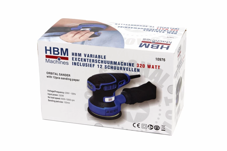Dat gecombineerd met een motorvermogen van 320 Watt, maakt dit een machine voor het serieuze werk. Een verflaag van een deur afschuren is met deze schuurmachine bijvoorbeeld snel gebeurd. Met het draaiwieltje dat met de duim bedient kan worden is het toerental regelbaar tussen 6000 en 13000 rpm. Een stofzakje vangt het meeste stof op dat actief door de schuurpads heen door de motor wordt afgezogen.