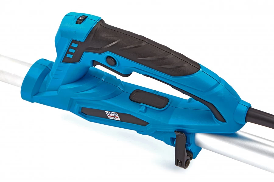 De HBM Wand en Plafondschuurmachine leent zich uitstekend om oppervlakten te schuren op plekken waar je moeilijk bij kunt. Doordat je een verlengstuk achter de handgreep kunt monteren, komt elke muur en elk plafond namelijk binnen handbereik. Maar ook zonder dit opzetstuk kan je ruim een meter hoog schuren. Om te zien waar je blijft, is op de schuurmachine een ledlamp geïnstalleerd.