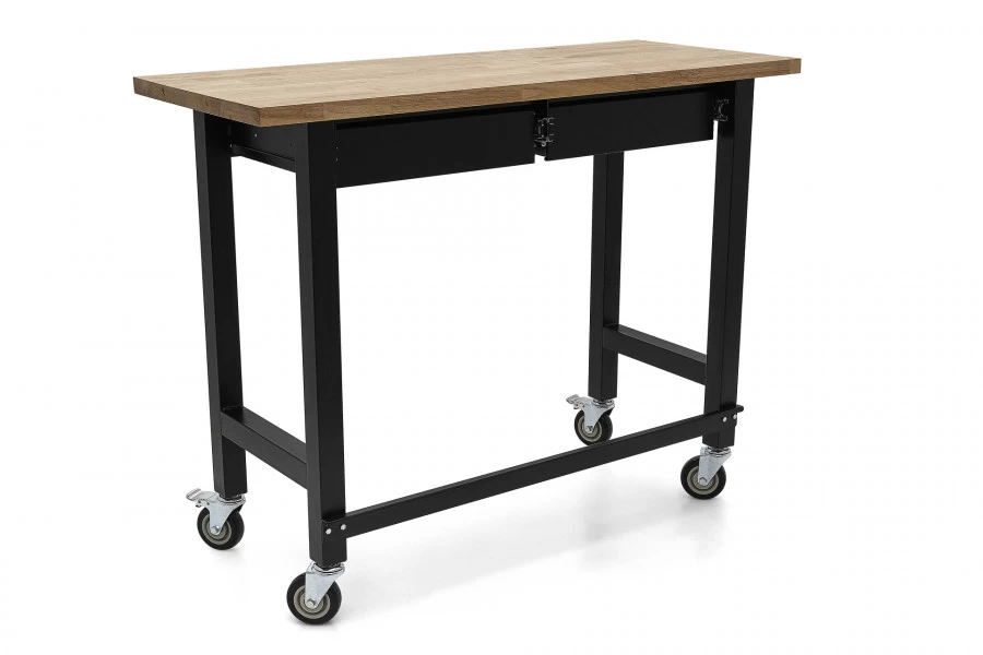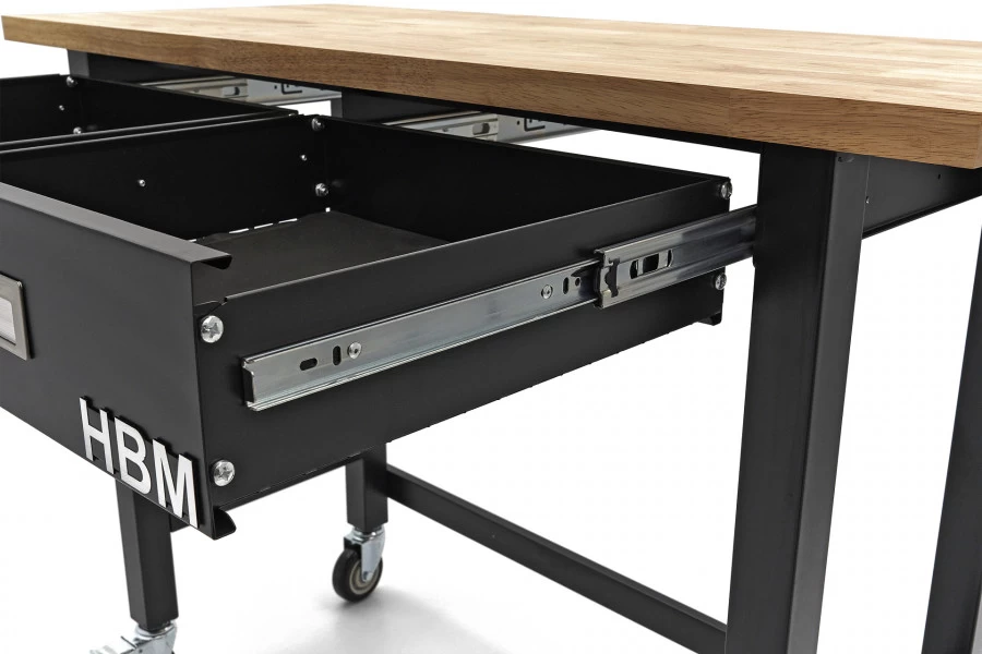 Over de HBM Professionele 122 Cm. Verrijdbare Werkbank Met 2 Laden en Massief Houten Werkblad