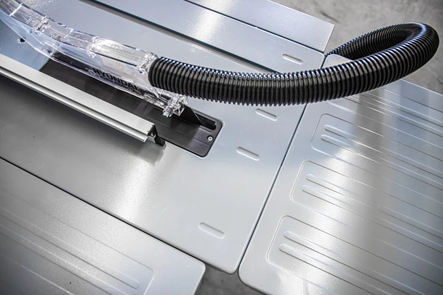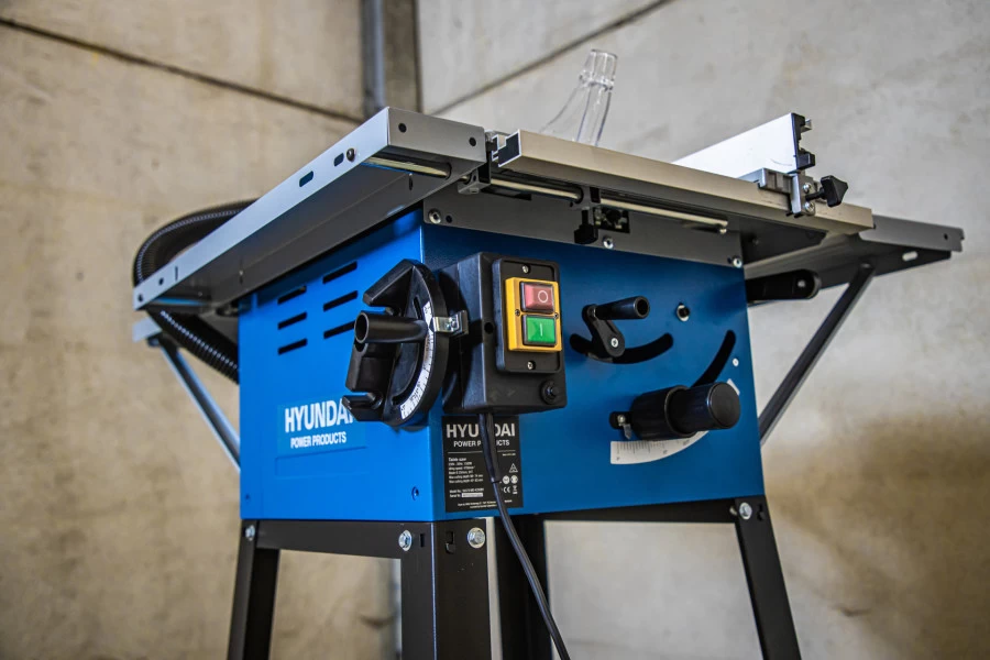 Deze tafelzaag staat op een stevig stalen frame met rubberen antislip voeten, waardoor stabiliteit en veiligheid gegarandeerd zijn. Met een werkhoogte van 86 cm geniet je van een comfortabele werkomgeving. Voor een schone en veilige werkplek is de Hyundai zaagtafel voorzien van geïntegreerde stofafzuiging. Zaagsel en stof worden efficiënt afgevoerd dankzij de zaagbladafdekking en behuizing. Deze zaagtafel is verder uitgerust met een ingebouwde overload-beveiliging en een noodstopsysteem.