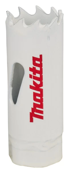 Deze Makita Gatzaagset 6-delig D-16938 is specifiek ontwikkeld voor het maken van gaten tot 20mm diepte in metaal. De gatzagen zijn voorzien van een flens aan de achterkant. De flens is breder dan de diameter van de gatzaag. Hierdoor kan de gatzaag niet door het materiaal heen schieten. Dit is handig als er in bestaande situaties, zoals een besturingskast, een gat gemaakt dient te worden zonder achterliggende materialen te beschadigen. De afstand van de tanden tot aan de flens van de gatzaag is 20mm. Dit is korter dan andere gatzagen.