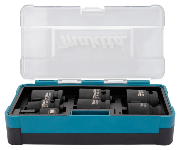 Deze Makita Krachtdoppenset 7-delig wordt geleverd in een stevige kunststof koffer met transparante deksel. De set is voorzien van 13, 17, 19, 21, 22, 24 mm krachtdoppen en een dopadapter met 1/4″ aansluiting naar 1/2″ dopaansluiting. Hierdoor is de set te gebruiken met slagmoersleutels en slagschroevendraaiers. In combinatie met een slagschroevendraaier raden we intensief gebruik af. O-ringen en pins worden niet meegeleverd.