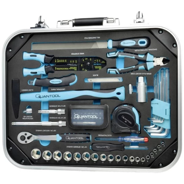 Zoek je een goede gereedschapset in een stevige koffer, dan is deze Quantool Q25100 iets voor jou. De koffer is gemaakt van HDPE en wordt geleverd met een grote verscheidenheid aan gereedschap. Je vindt onder andere diverse steeksleutels, schroevendraaiers, bits en nog veel meer. Het gereedschap is gemaakt van chroom vanadium staal en S2 staal en daardoor zeer sterk. Al dit gereedschap heeft in de koffer een eigen plek met aanduiding zodat je altijd snel de juiste tool kunt vinden.