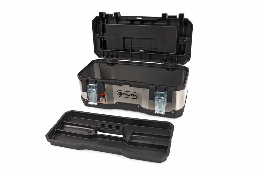 Over de Tactix Professionele RVS Gereedschapskoffer Met Uitneembare Opbergbakjes